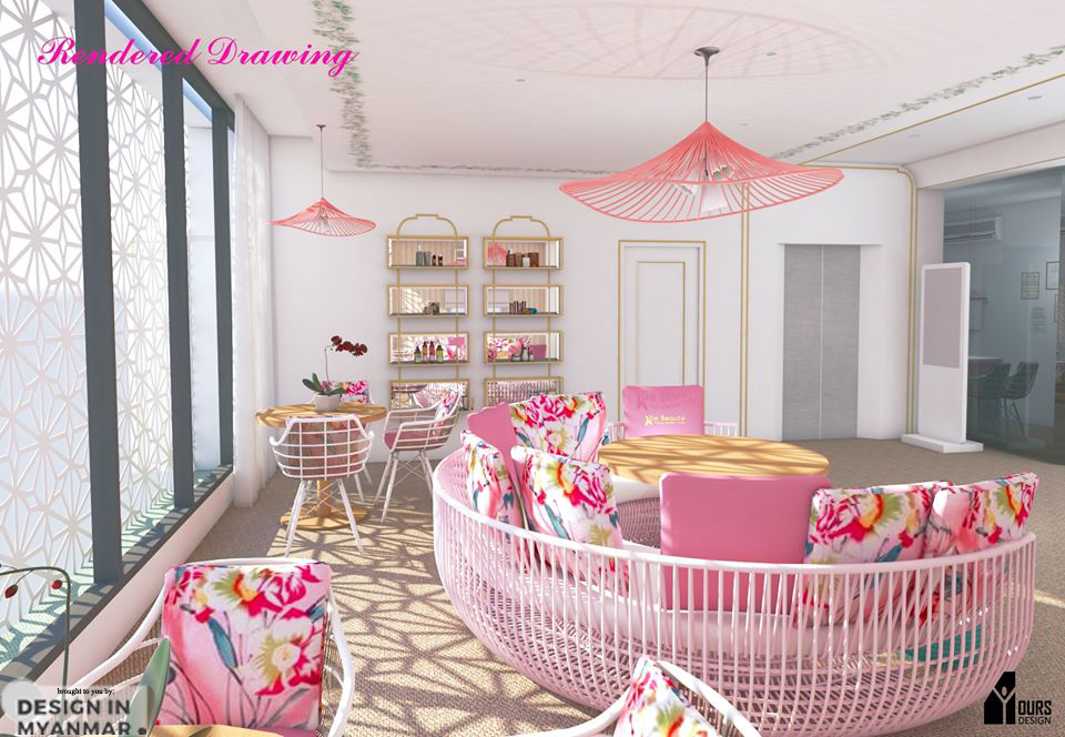 Our main design theme came from their logo with floral petals. We tried to give the mood of sitting in a beautiful flowering field. The randomly located petals on the counters are to add some movement to the design so that one can feel as if the breeze is passing through the flowers and making them dance. The pendent lights and the mirror design also based on the floral look. Going towards a soft and cute design theme, we designed with curves and avoided sharp corners where possible.