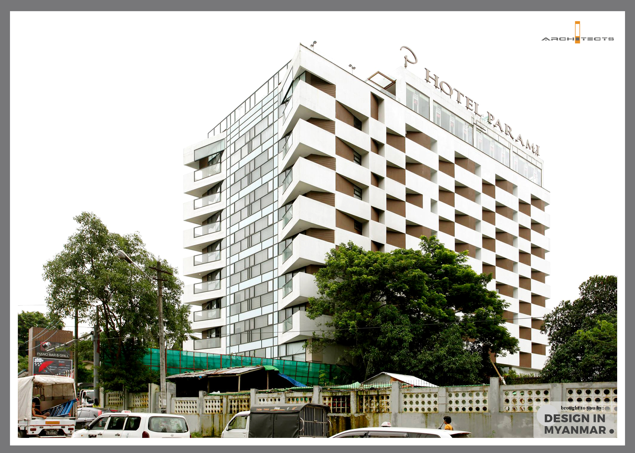 Head consultant and architect for the architectural and interior design of Hotel Parami, 7 and a half storied Hotel with one basement located at Mayangone Township, Yangon.
